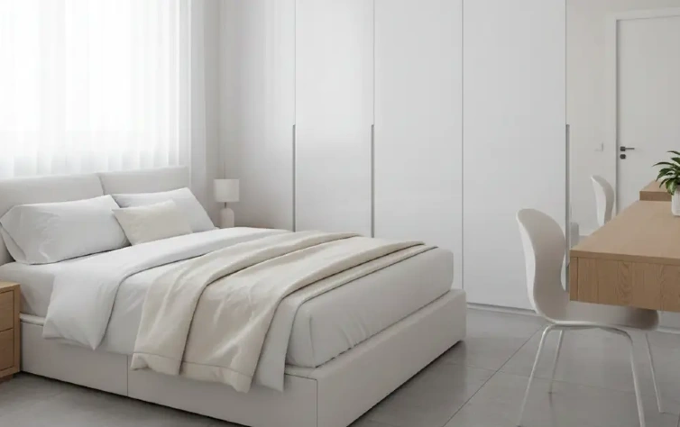 As cores também exercem papel fundamental. Tons claros, neutros e contínuos ampliam visualmente o ambiente e criam sensação de leveza, principalmente quando combinados com acabamentos uniformes. Já os layouts recomendados priorizam circulação fluida, evitando bloqueios visuais e garantindo que o quarto funcione bem no dia a dia. Em projetos bem resolvidos, o quarto pequeno deixa de ser uma limitação e passa a ser um espaço eficiente e acolhedor.